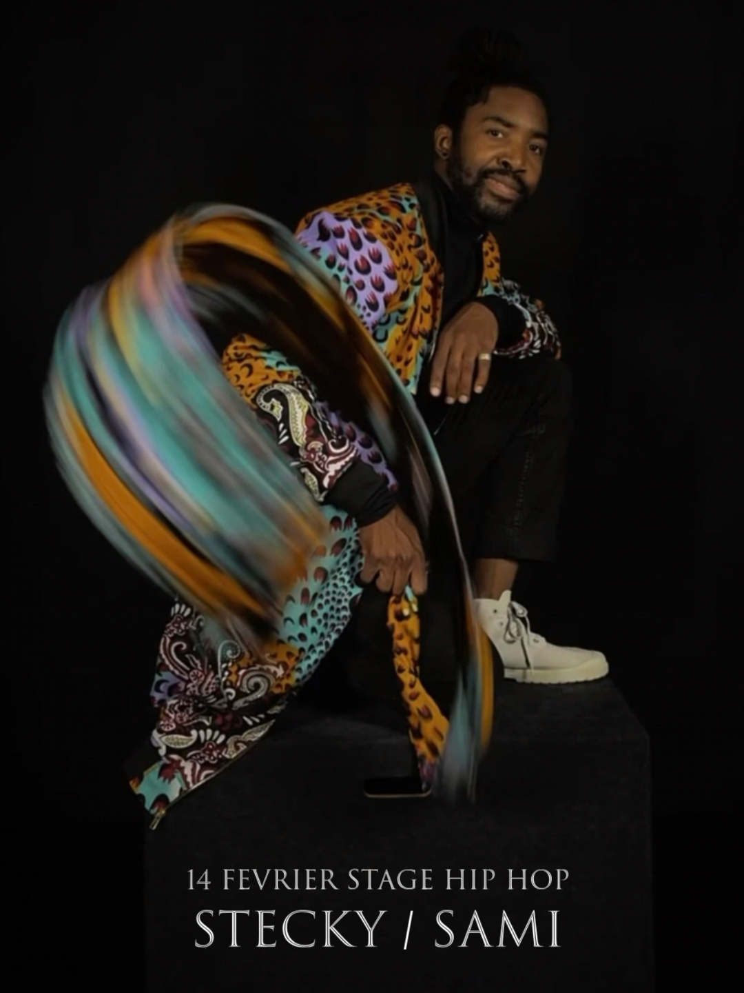 Au programme : une rencontre explosive entre STECKY et Sami Loviat-Tapie. STECKY t’emmènera dans un univers mêlant breakdance, capoeira et acrobaties. Sami, danseur et chorégraphe passionné, partagera une danse sensible et singulière nourrie par la scène, la création et l’envie de transmettre dans la joie et la bonne humeur.